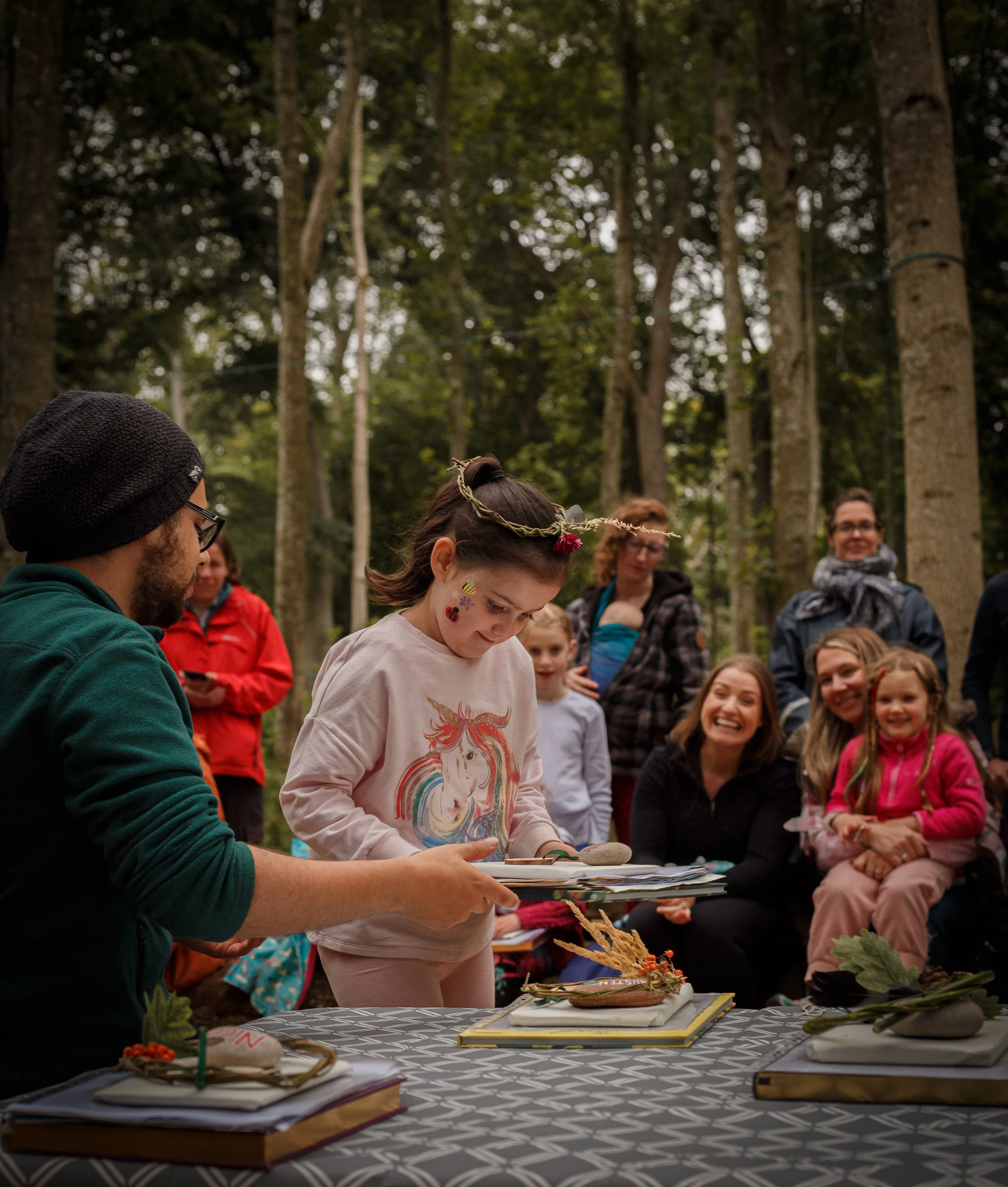 We recently celebrated our 2023 leavers who are heading off to school (or home school) by inviting their families to Kindy. We had a drumming session, face painting, treats from Mrs Smiths and a ceremony where each child received a woodland crown, book, a stone painted by Zain with an animal or plant that each child is aligned with and their learning journals, which cover their key milestones and memories from their time at Kindy. We wish all the children the very best with their next adventure and hope none will be strangers.